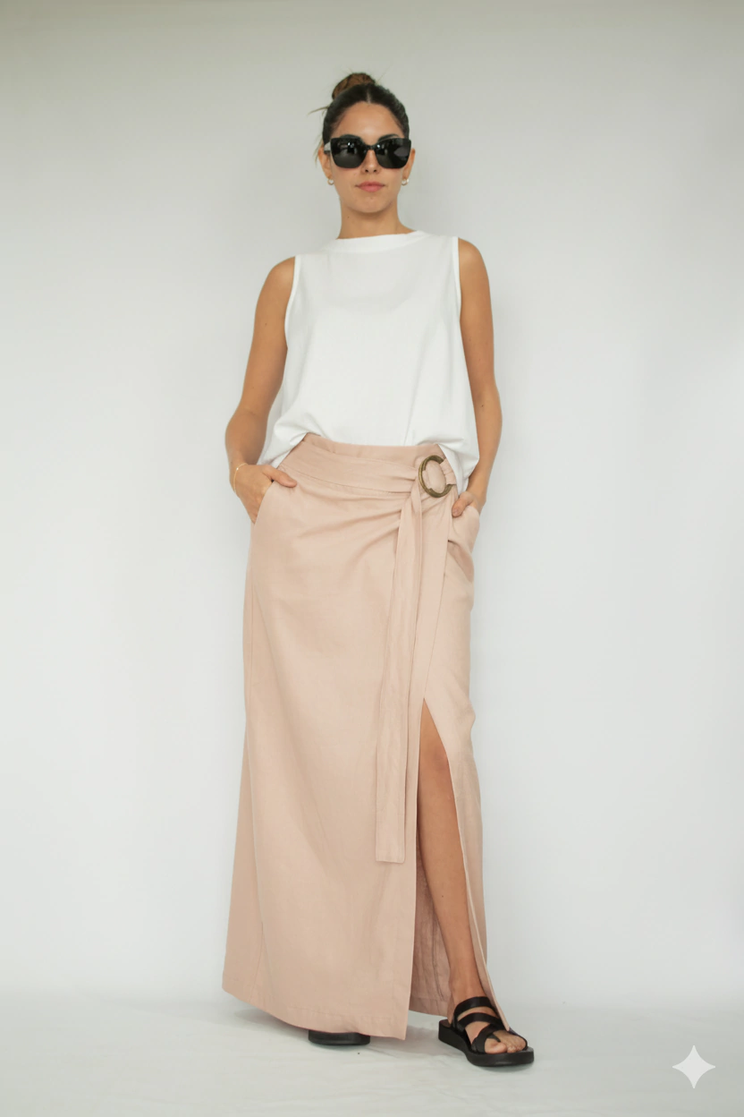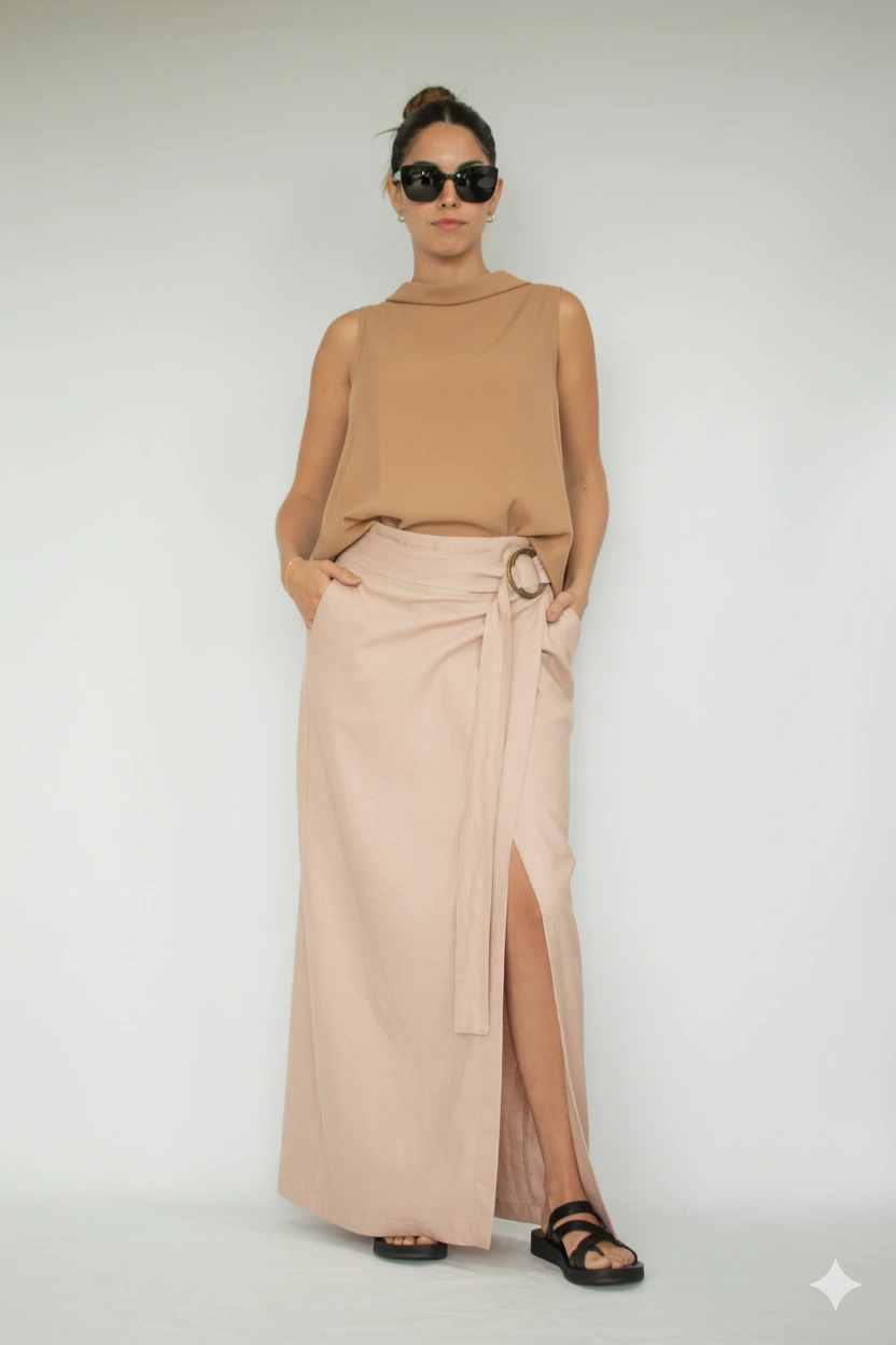 Perfecta para llevar con pantalones amplios o faldas de lino, logrando un equilibrio entre elegancia y comodidad.