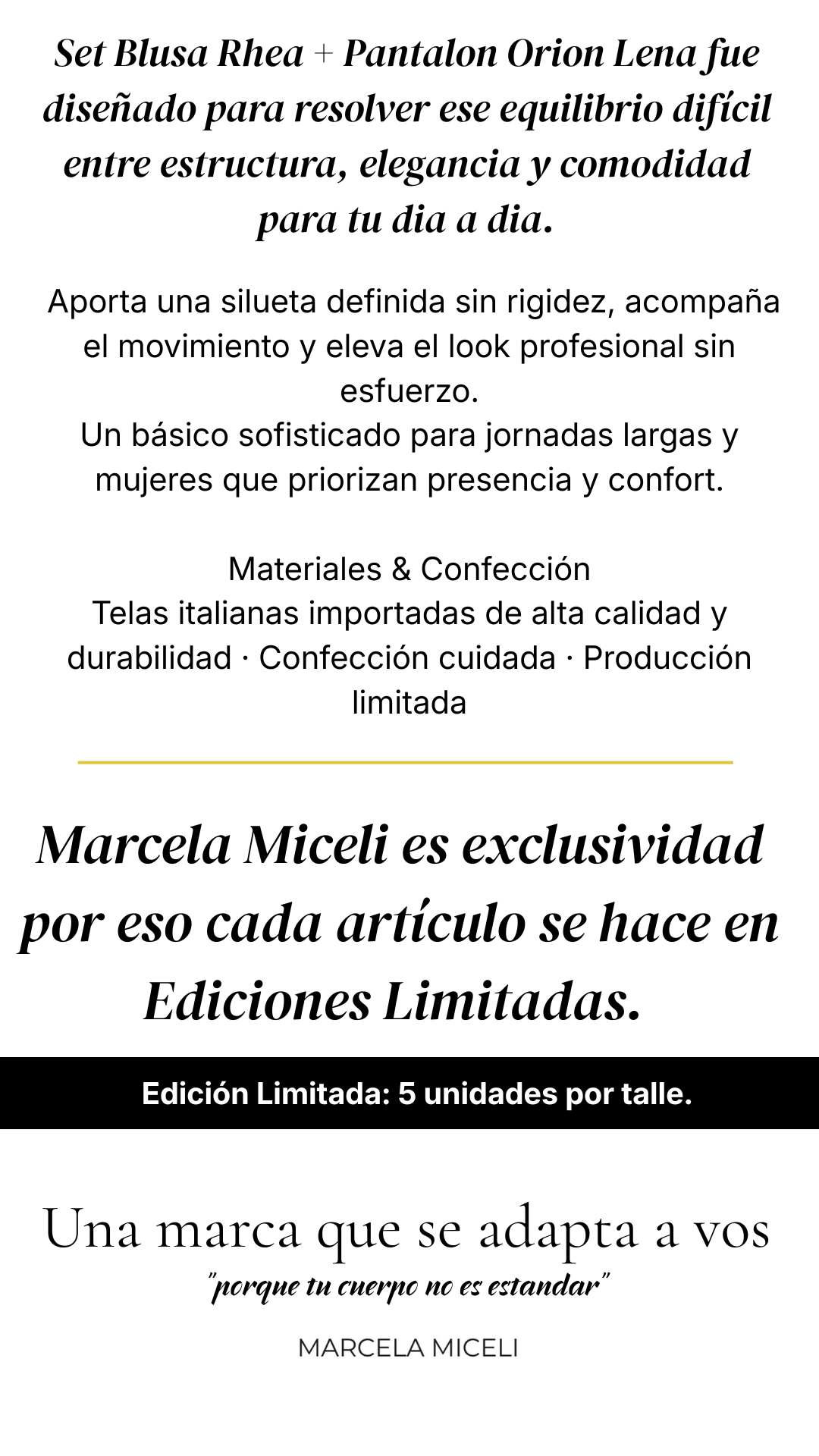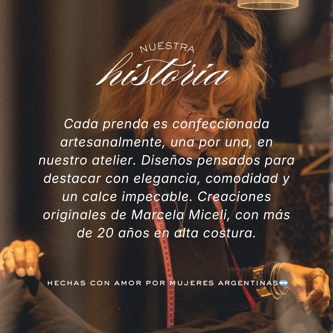 Todas nuestras prendas están confeccionadas a mano, con telas de alta calidad y atención en cada detalle. Trabajamos en ediciones limitadas, por lo que el stock es reducido.
